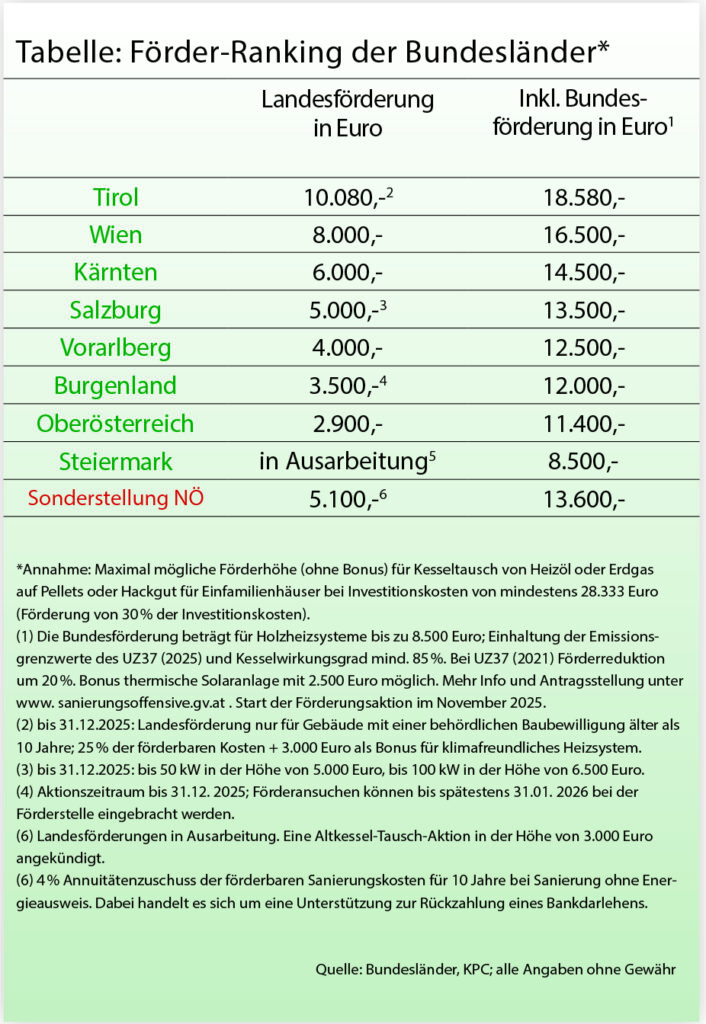 Die Sanierungsoffensive 2026 mit den zentralen Förderungsschwerpunkten Kesseltausch und Sanierungsbonus fördert Investitionen in klimafreundliche Heizsysteme und thermisch-energetische Sanierungen! Österreichweit, sowohl bei Ein- und Zweifamilienhäusern und Reihenhäusern als auch im mehrgeschoßigen Wohnbau und in Reihenhausanlagen. Sie bietet eine attraktive Möglichkeit, Heizsysteme klimafreundlich zu modernisieren sowie Gebäude thermisch-energetisch zu verbessern. Lieferungen und Leistungen für den Kesseltausch werden ab 03.10.2025 gefördert. Bitte beachten Sie dazu die entsprechenden Informationsblätter.